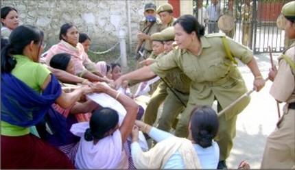 | | Women cops confront meira paibis demanding the release of Kangleipal near the Raj Bhawan | |